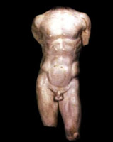 The Greeks weren't shy about displaying their manly attributes. Nudity was celebrated in Greece as in no culture before or since. We're so used to nude classical sculpture and painting that we figure that's how everybody walked around back in those days. In fact, however, male nudity in art and among athletes and warriors was largely confined to the ancient Greeks, for whom it became a point of pride--they considered embarrassment at having to disrobe for sports a sign of barbarism. Admiration of the manly form at times verged on the cultlike; the more heroic bits of male sculpture, small penis or no, have an erotic charge that can make even a straight male sweat.